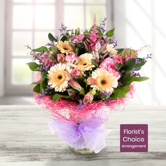 Please Note that due to the seasonal availability of flowers it may be necessary to vary individual stems from those shown. Our skilled florists may substitute flowers for one similar in style, quality and value. Where our designs include a sundry item like a vase or basket it may not always be possible to include the exact item as displayed. If such an occasion arises we will make every effort to replace the item with a suitable alternative.