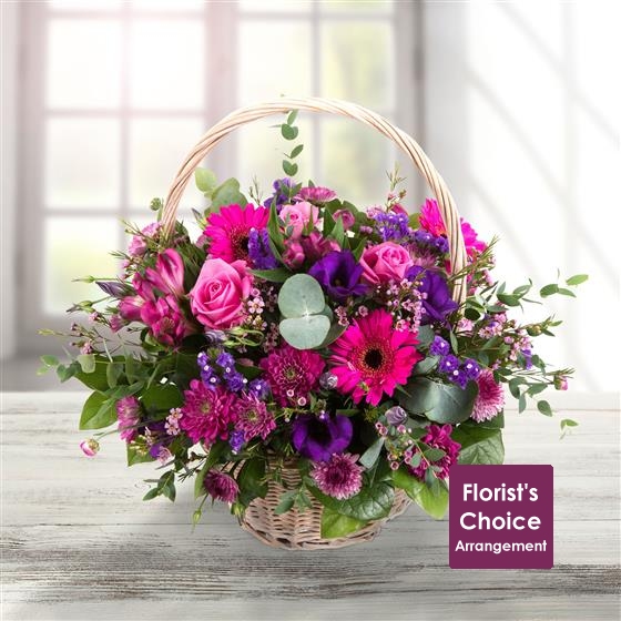 Choose from a range of colour options and we will create a traditional basket arrangement using seasonal blooms and foliage.