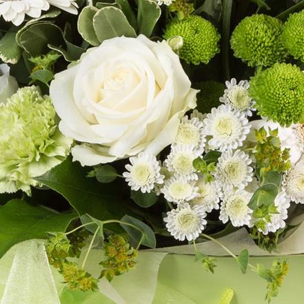 Vibrant limes and whites contrast to make this stylish hand-tied bouquet presented in a gift bag.