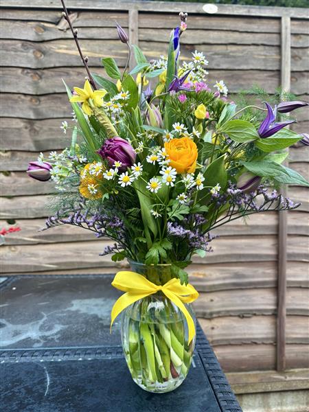 Please Note that due to the seasonal availability of flowers it may be necessary to vary individual stems from those shown. Our skilled florists may substitute flowers for one similar in style, quality and value. Where our designs include a sundry item like a vase or basket it may not always be possible to include the exact item as displayed. If such an occasion arises we will make every effort to replace the item with a suitable alternative.